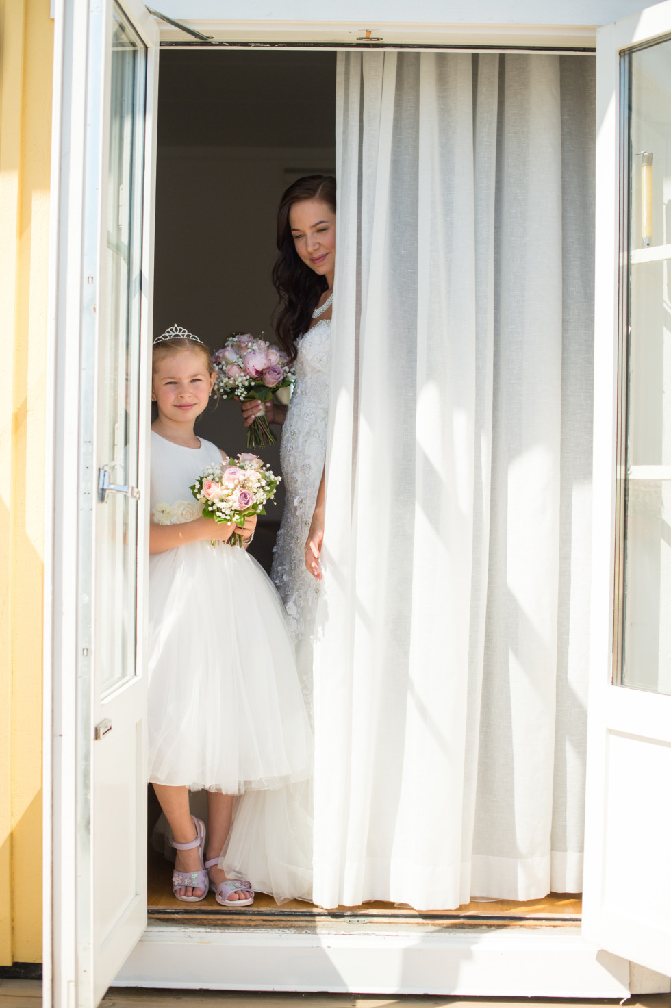 Brudens kläder: Brudklänning från Morilee, av Madeline Gardner. Skor från Dune London.