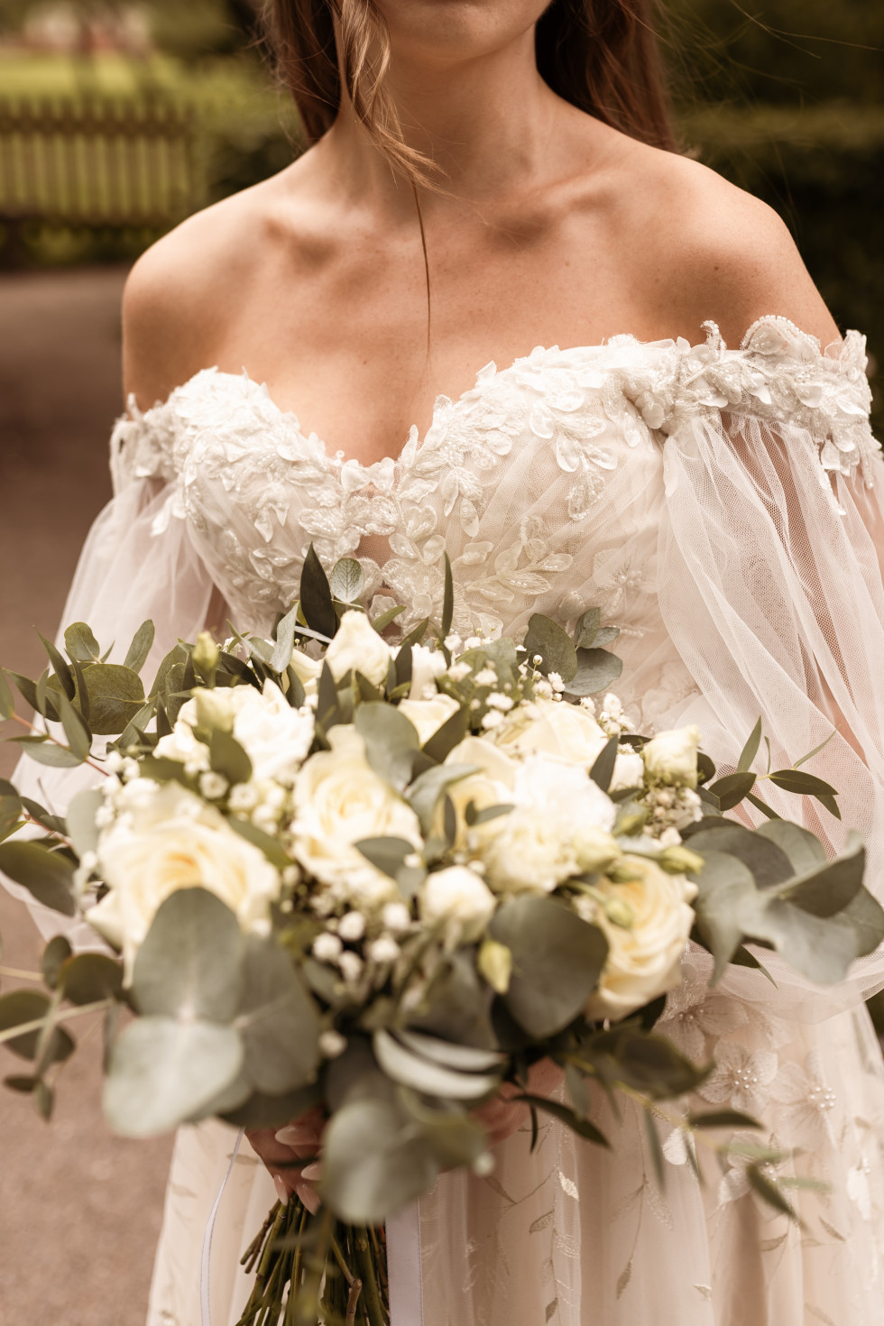 Jag hade tidigt en vision av vilka färger bröllopet skulle gå i; vitt och eucalyptus-/salviagrönt med inslag av guld. Medelstort, och mer åt det lantliga, lite rustika hållet.