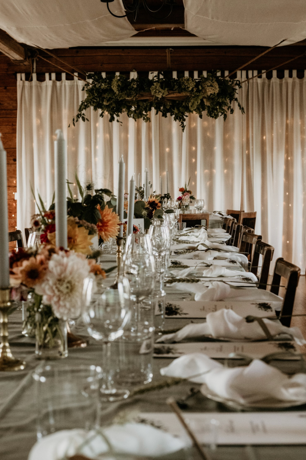 – Vi vill minska konsumtionen av bröllopsartiklar som de flesta bröllopspar önskar och som går att återanvända. Vi har ett stort dekorationsförråd så brudparen behöver inte köpa på sig onödig dekoration, flera ljusstakar, vaser och så vidare. Det brudparen själva står för är mat, dryck och blommor. Samtidigt vill vi att som bröllopspar inte ska behöva fundera på exempelvis hur många ljusslingor ni behöver till takbjälkarna eller hur mycket tyg som behövs för att dölja lamporna i taket. Därför ingår mycket av detta i våra bröllopspaket så att brudparet kan lägga energi på det som är viktigt. Vi har alltså valt att hålla mat och dryck utanför vårt koncept och självklart har vi många duktiga samarbetspartner som vi gärna rekommenderar!