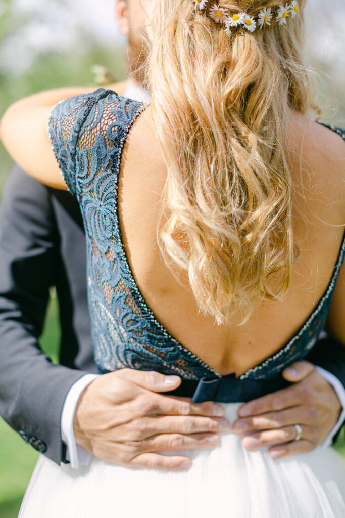 Vi gör sedan en sista provning och efter den får du äntligen ta med dig klänningen hem – en unik, egendesignad klänning som du är helt ensam om.